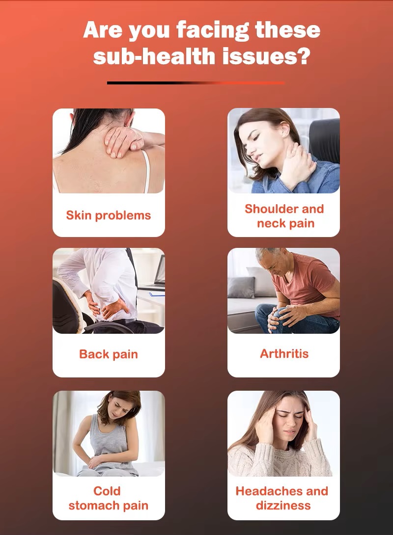 Main conditioning symptoms: dispel dampness and expel cold, dredge meridians, shoulder and neck pain, lumbar muscle strain, spleen