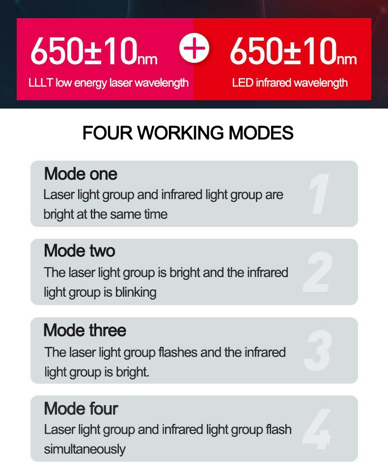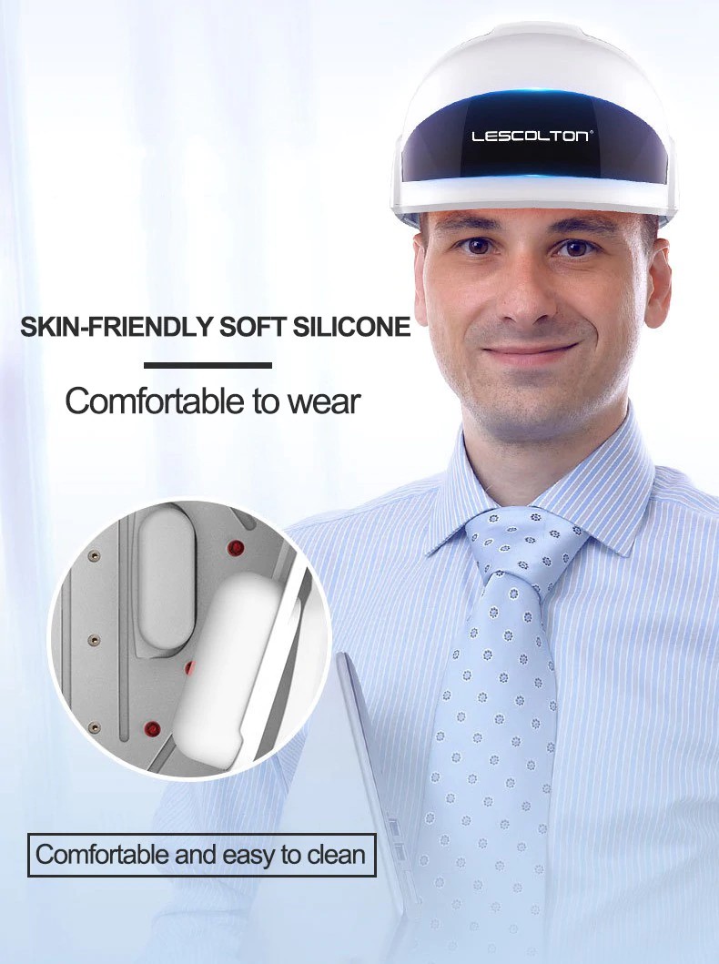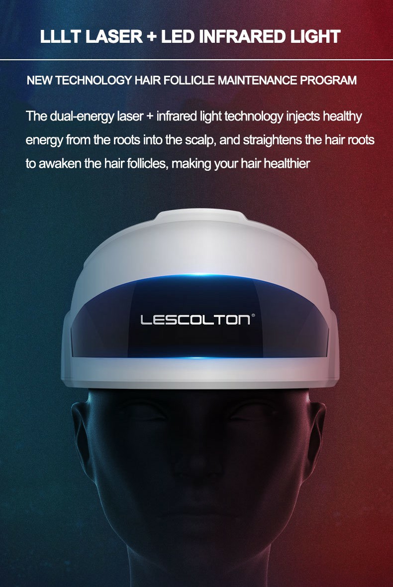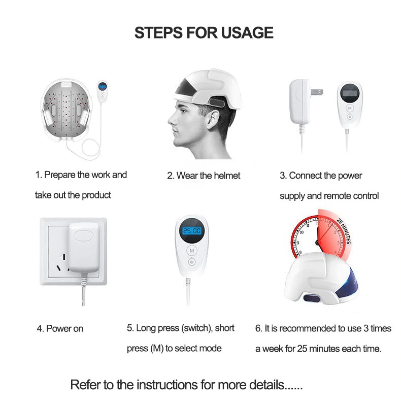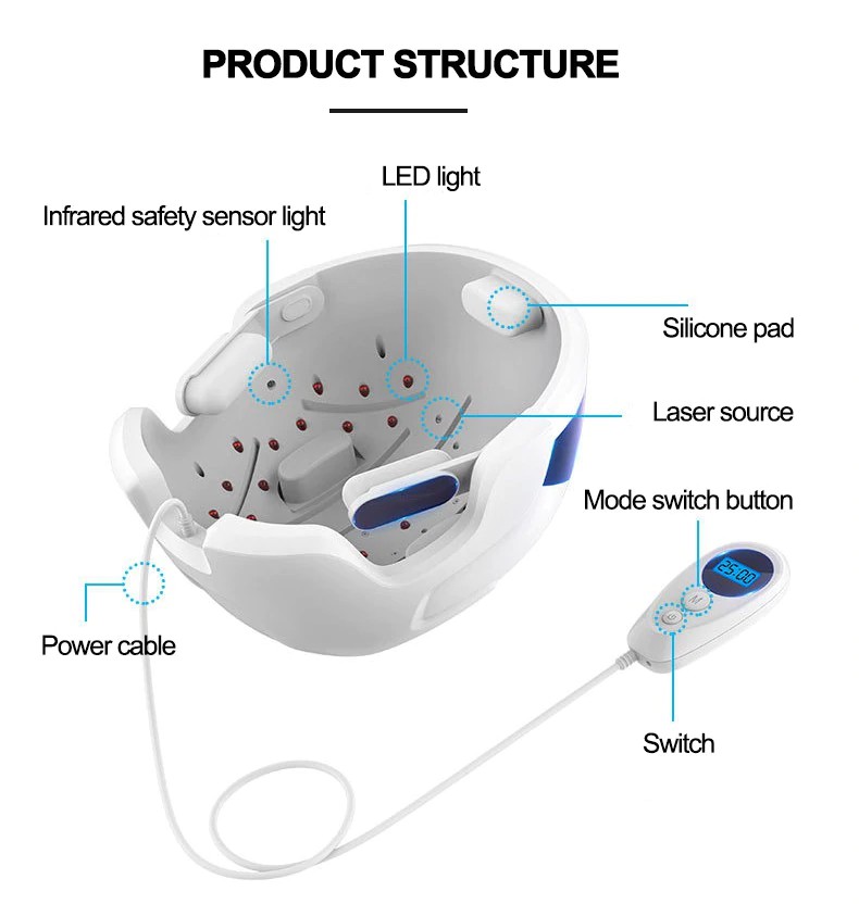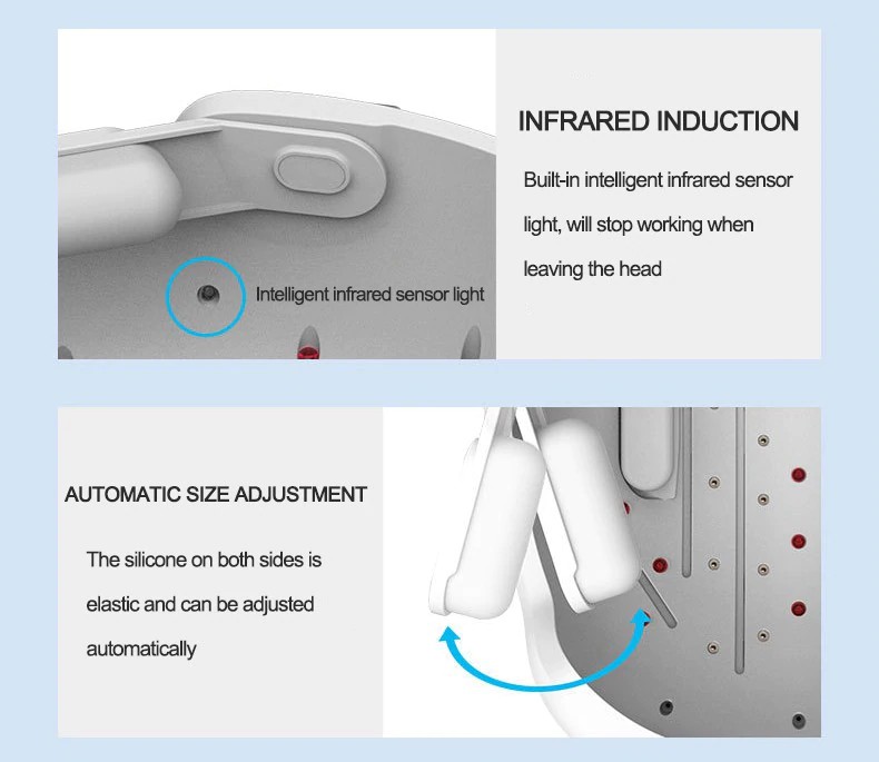 Hair growth device is a laser hair-enhanced product with functions such as oil control, hair loss, hair growth and hair growth. Laser plus infrared dual high-tech, infrared light energy, laser penetration, can maximize the activation of hair follicle function in the scalp, long-term use, can make hair regeneration.Lightweight ergonomic design makes it more comfortable to wear; upgrades four modes to choose the mode that suits you; built-in intelligent infrared sensor light, the product will stop working when it is not worn on the head.