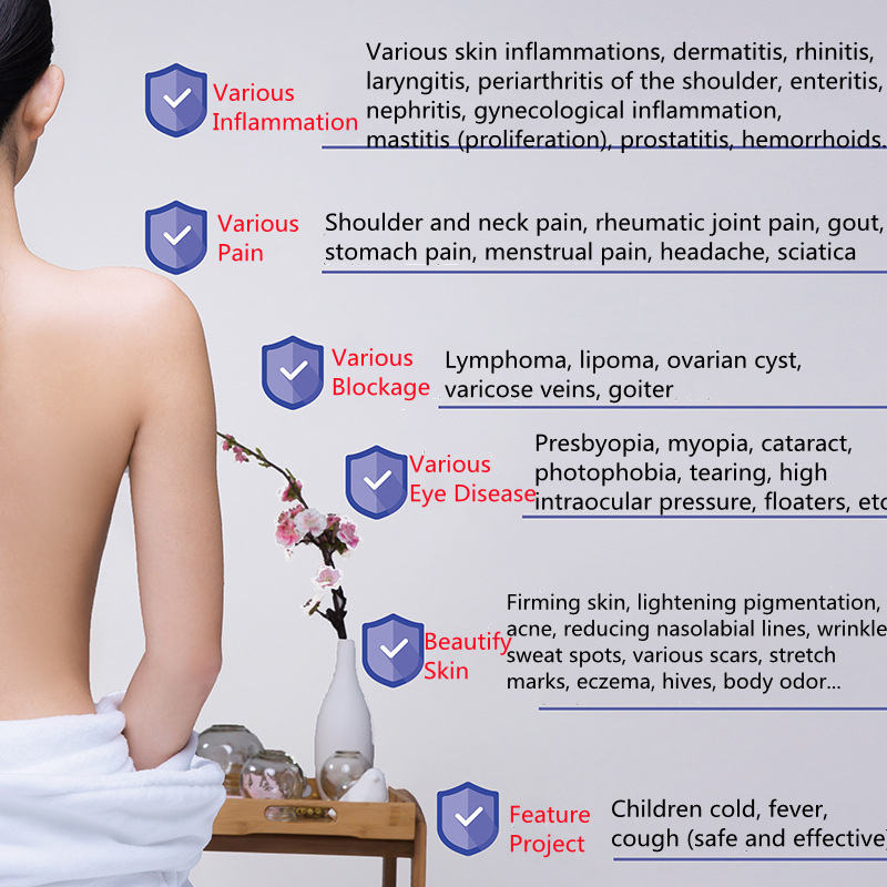 Terahertz wave can activate nerves and cells to increase human metabolism, provide fresh nutrition to cells, improve the absorption of energy by cell mucosa, adjust the balance of human cells, activate and improve a variety of enzymes, and enhance material metabolism and energy metabolism. Light waves instantly produce high temperature at the stasis in the body, quickly kill mutant cells, open meridians, activate dormant cells, strengthen, enhance, repair and soften damaged cells. Inhibiting cell mutation and treating all diseases caused by cytopathy have remarkable curative effect.